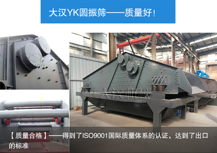 【質(zhì)量合格】——產(chǎn)品終都要回到使用這個因素上,所以只有質(zhì)量合格才能讓生產(chǎn)進(jìn)行下去。大漢機(jī)械的YK圓振篩是嚴(yán)格按照國家生產(chǎn)標(biāo)準(zhǔn)生產(chǎn)的,經(jīng)久耐用,廣受好評,并且得到了ISO9001國際質(zhì)量體系的認(rèn)證,達(dá)到了出口的標(biāo)準(zhǔn)。